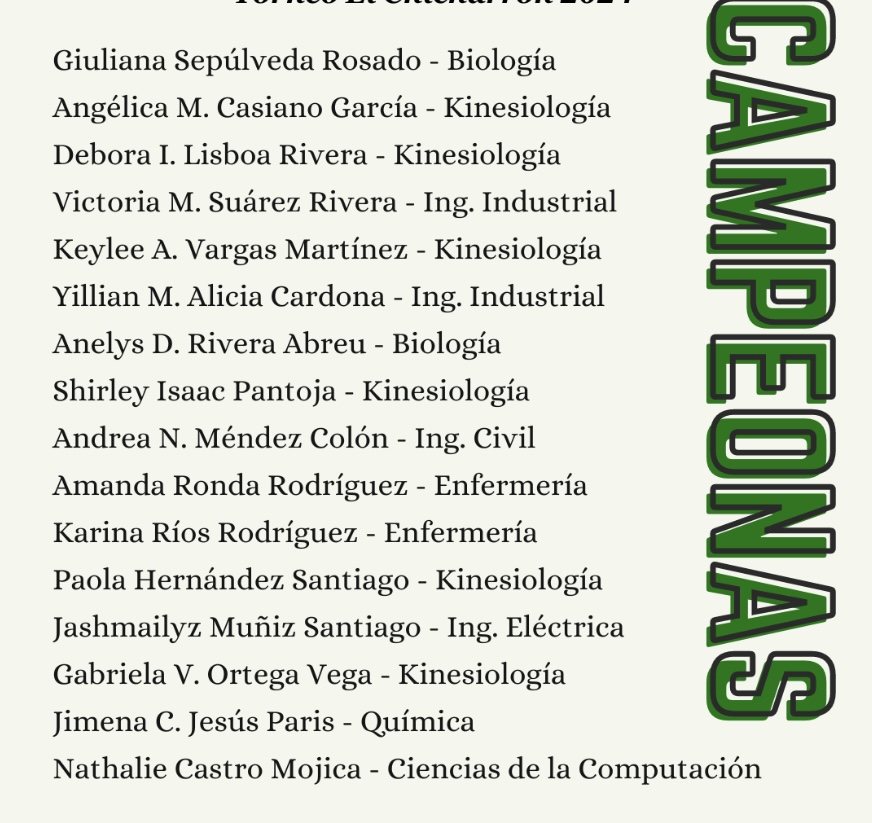 Felicitamos a nuestras Juanas de Baloncesto Femenino, que se proclamaran campeonas del torneo de la UPR-Bayamón. Post navigationPreviousPrevious post:Ahyram Monteverde Díaz – Nuestros lanzadores han continuado sus entrenamientos, con el fin de mantener su nivel y mejorar sus marcas individuales.NextNext post:UPRM Cheer Squad Tryout