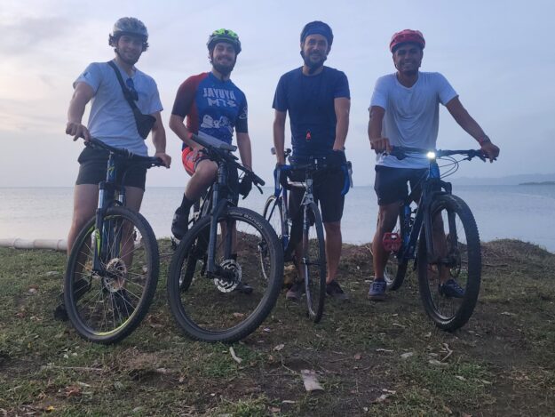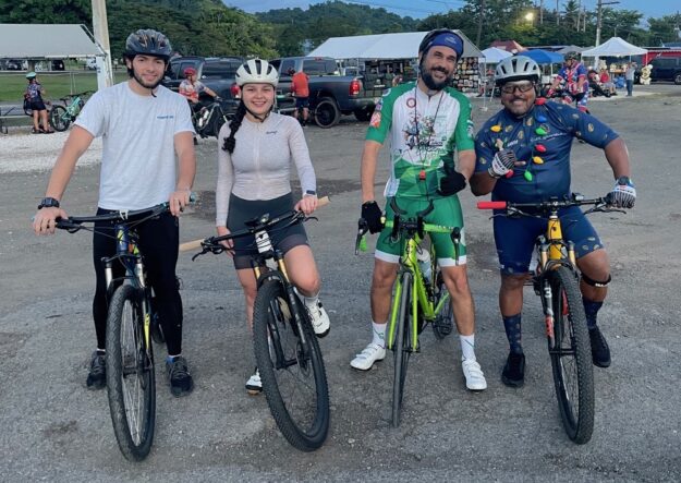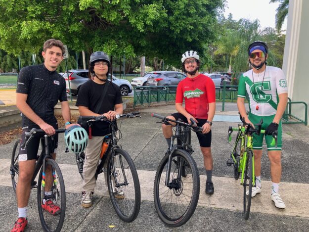 Vuelta recreativa de 20 Km al atardecer por Mayagüez saliendo desde el Recinto Universitario de Mayagüez con 4 participantes y regresando.