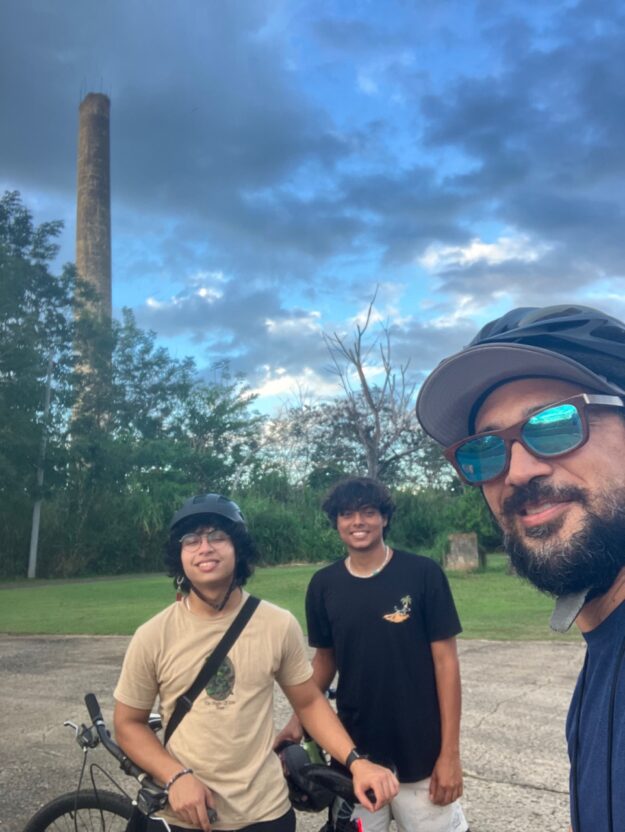 Vuelta recreativa de 22.5 Km al atardecer por Mayagüez saliendo desde el Recinto Universitario de Mayagüez con 3 participantes en dirección norte pasando por El Maní, Central Igualdad, Miradero y regresando.