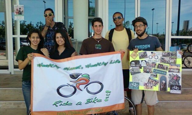 Recorrido por las principales avenidas del Recinto Universitario de Mayagüez en bicicleta y marchando.