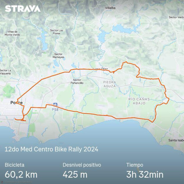 Décimo segunda edición de la vuelta ciclista Med Bike Rally el domingo, 17 de marzo de 2024 organizada por Med Centro. Con 5 participantes en la ruta larga Ponce – Juana Díaz – Santa Isabel; ver la ruta larga de 60 Km. Comunicado oficial del evento.