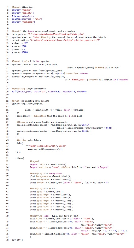 R script that plots spectra from an Excel file and saving the plot in a PNG file.