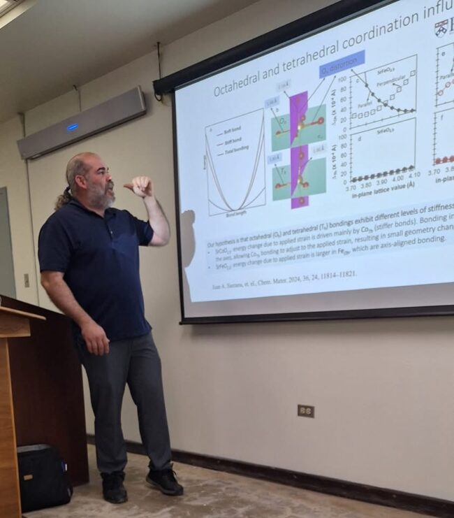 HANSEL MONTALVO, DESCRIBIENDO SU INVESTIGACIÓN DONDE EVALUA ESTRUCTURAS DE ZEOLITA PARA APLICACIONES DE SEPARACIONES DE COMPUESTOS QUÍMICOS Y COMO AGENTES CATALÍTICO CON VARIADAS APLICACIONES EN LA CIENCIA. SeminarioBy chemistryApril 23, 2025