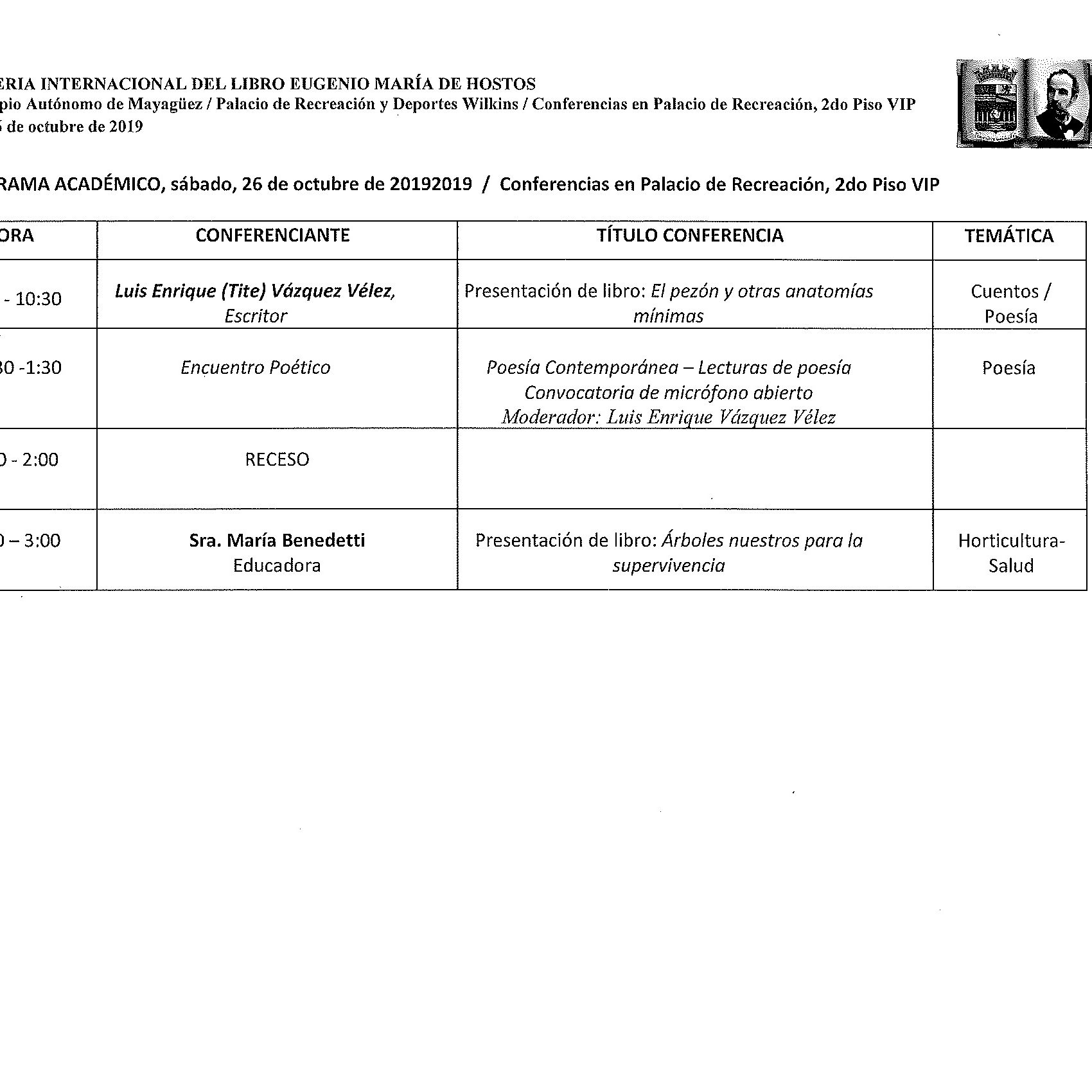 5ta Feria Internacional del Libro Eugenio María de Hostos, a partir de este miércoles 23 de octubre.
