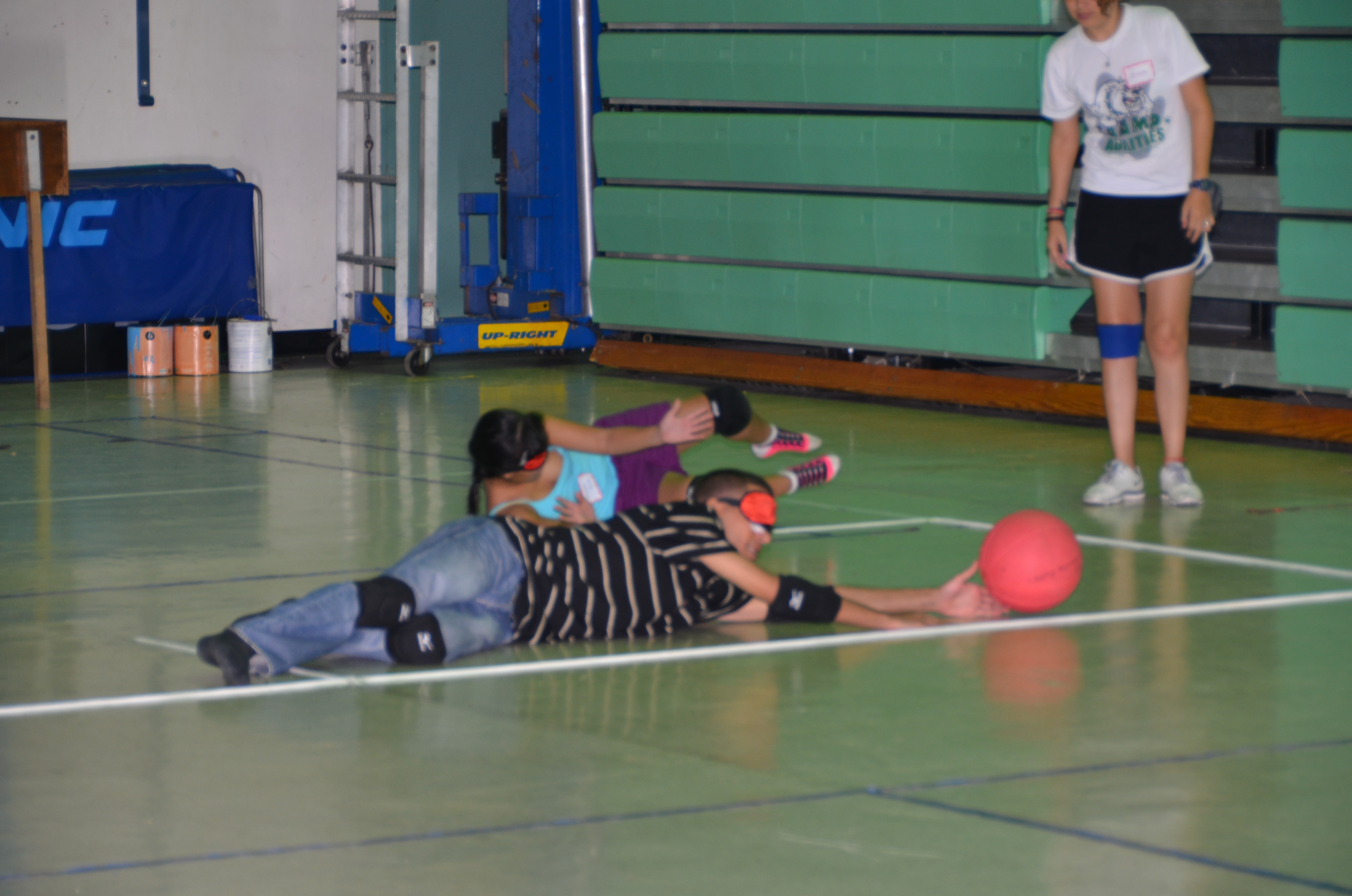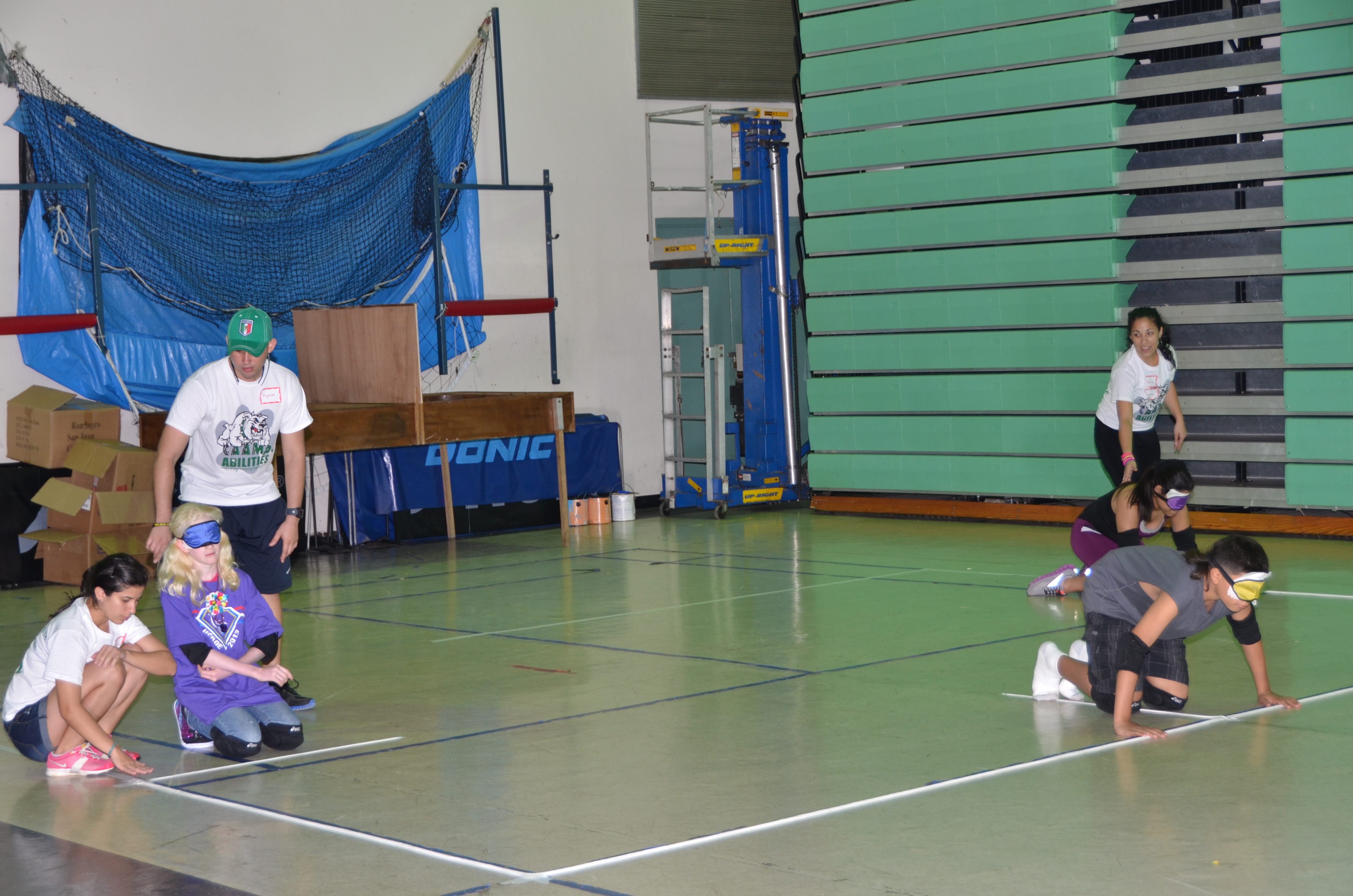 El Balón Gol es el único deporte paralímpico creado específicamente para personas ciegas en el que participan dos equipos de tres jugadores cada uno. Se basa principalmente en el sentido auditivo para detectar la trayectoria de la pelota en juego (que lleva cascabeles en su interior) y requiere, además, una gran capacidad espacial para saber estar situado en cada momento en el lugar más apropiado, con el objetivo de interceptar o lanzar la pelota. Para ver las fotos en su tamaño y orientación original favor pulsar encima de la deseada. Para volver y seguir disfrutando de la página pulsar “Back”