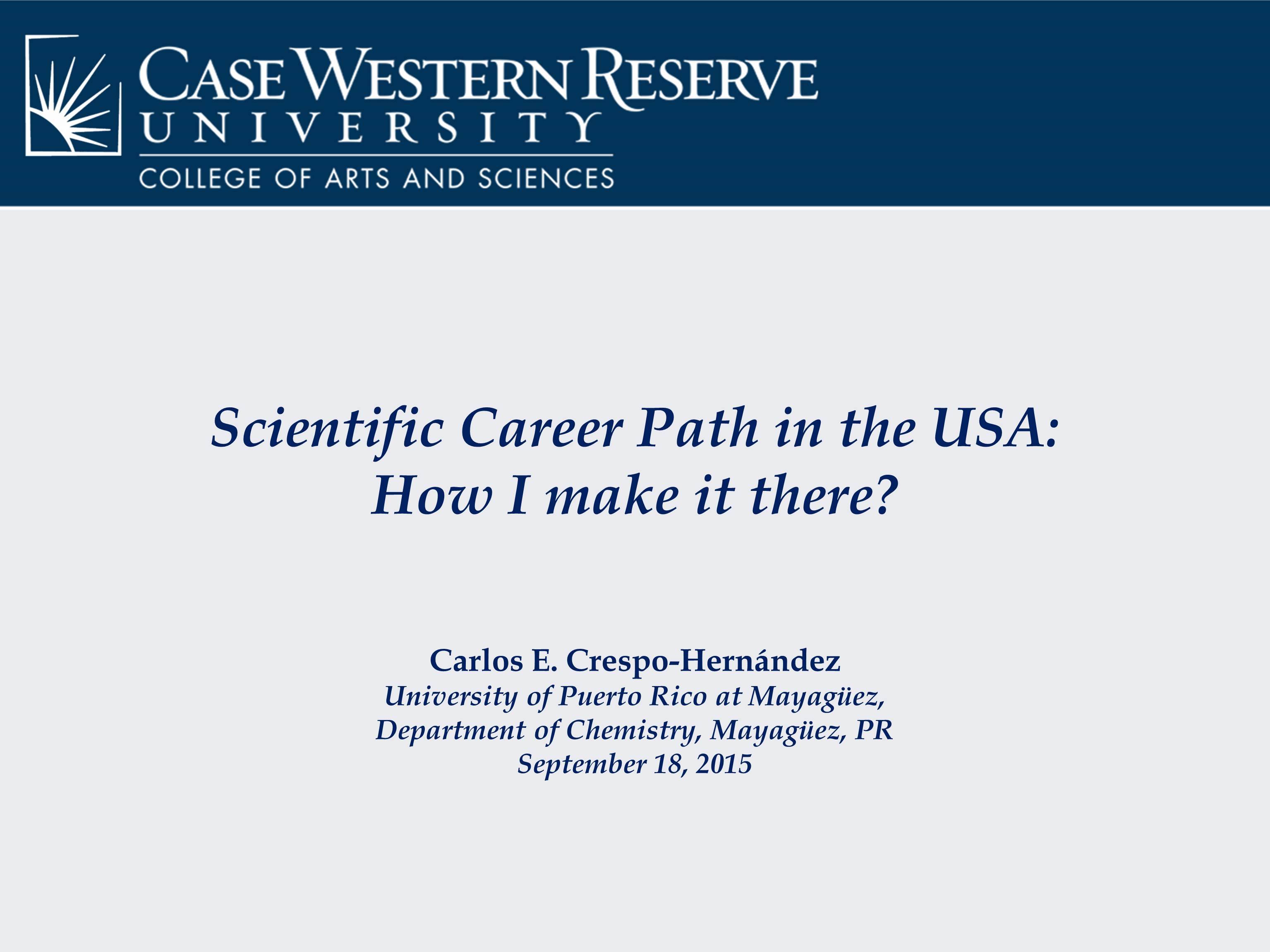 Dr. Carlos Crespo-Hernández, Associate Professor of Chemistry at Case Western Reserve University in Cleveland, Ohio, recently became our first Sloan Seminar Series speaker. We gave Dr. Crespo-Hernández a very difficult challenge: to speak about his career path and accomplishments.