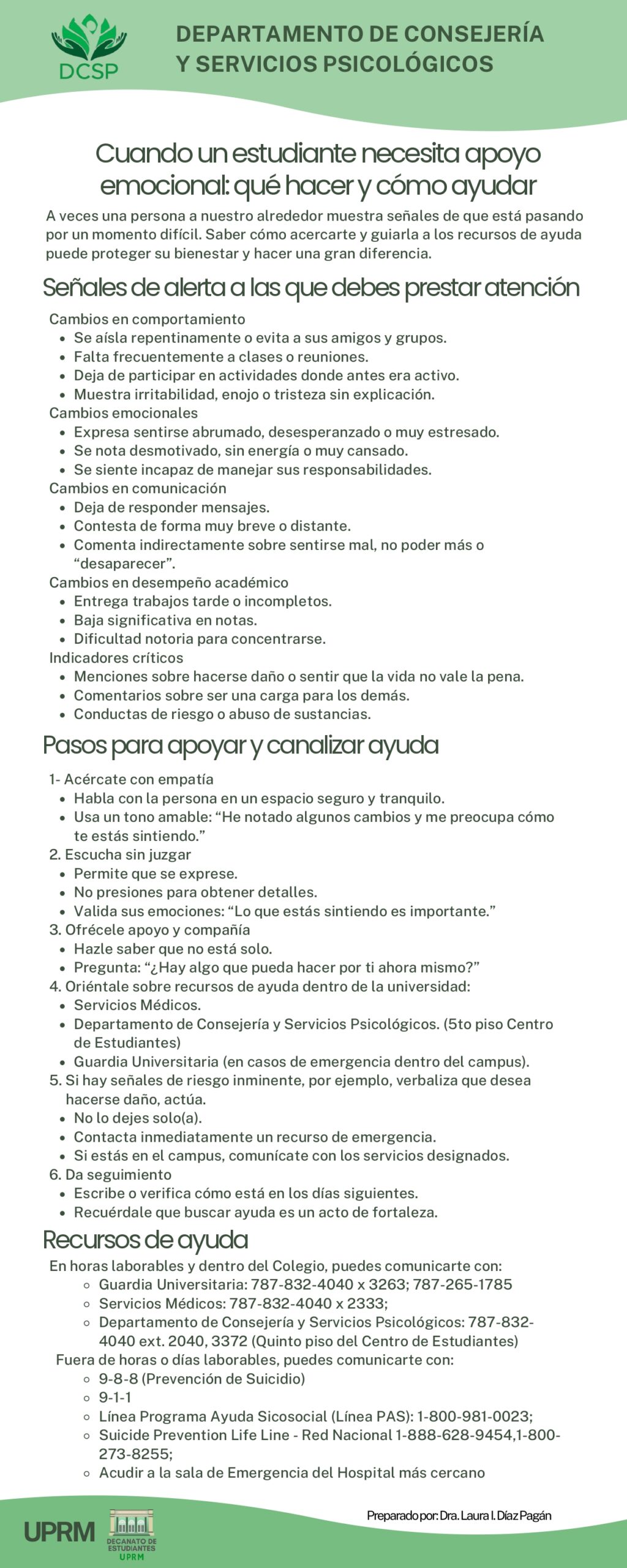 Departamento de Consejería y Servicios PsicológicosDepartamento de Consejería y Servicios Psicológicos