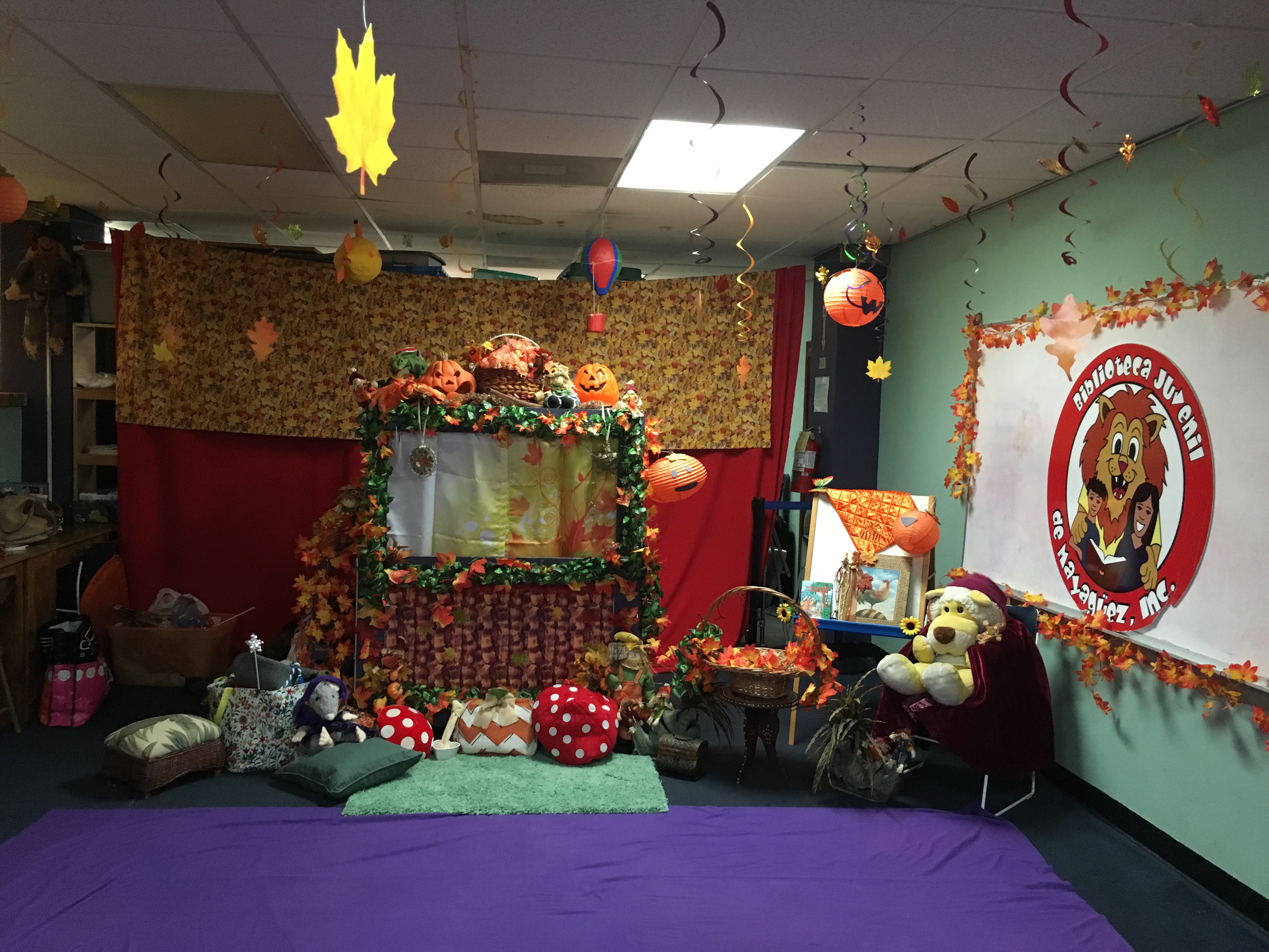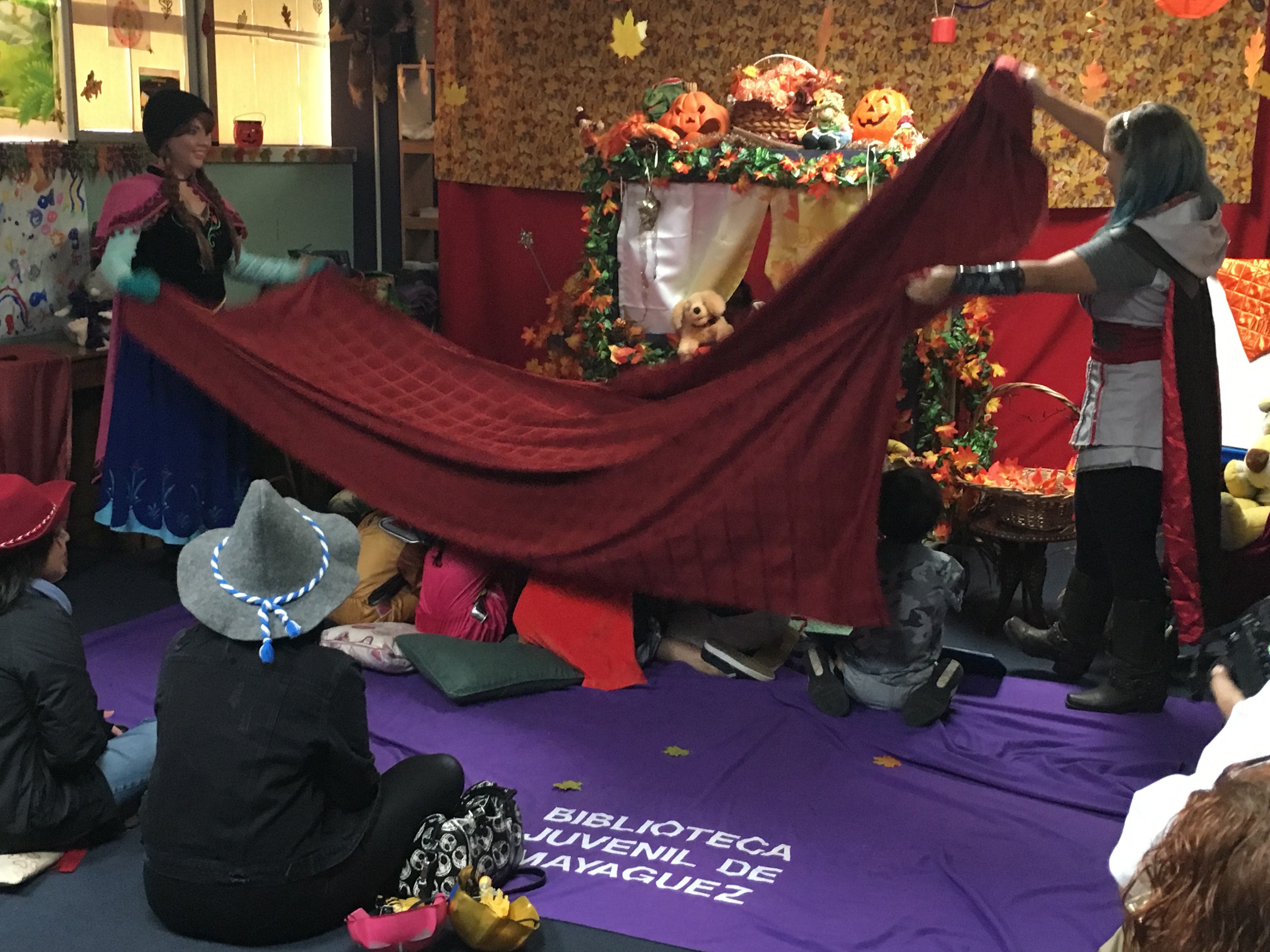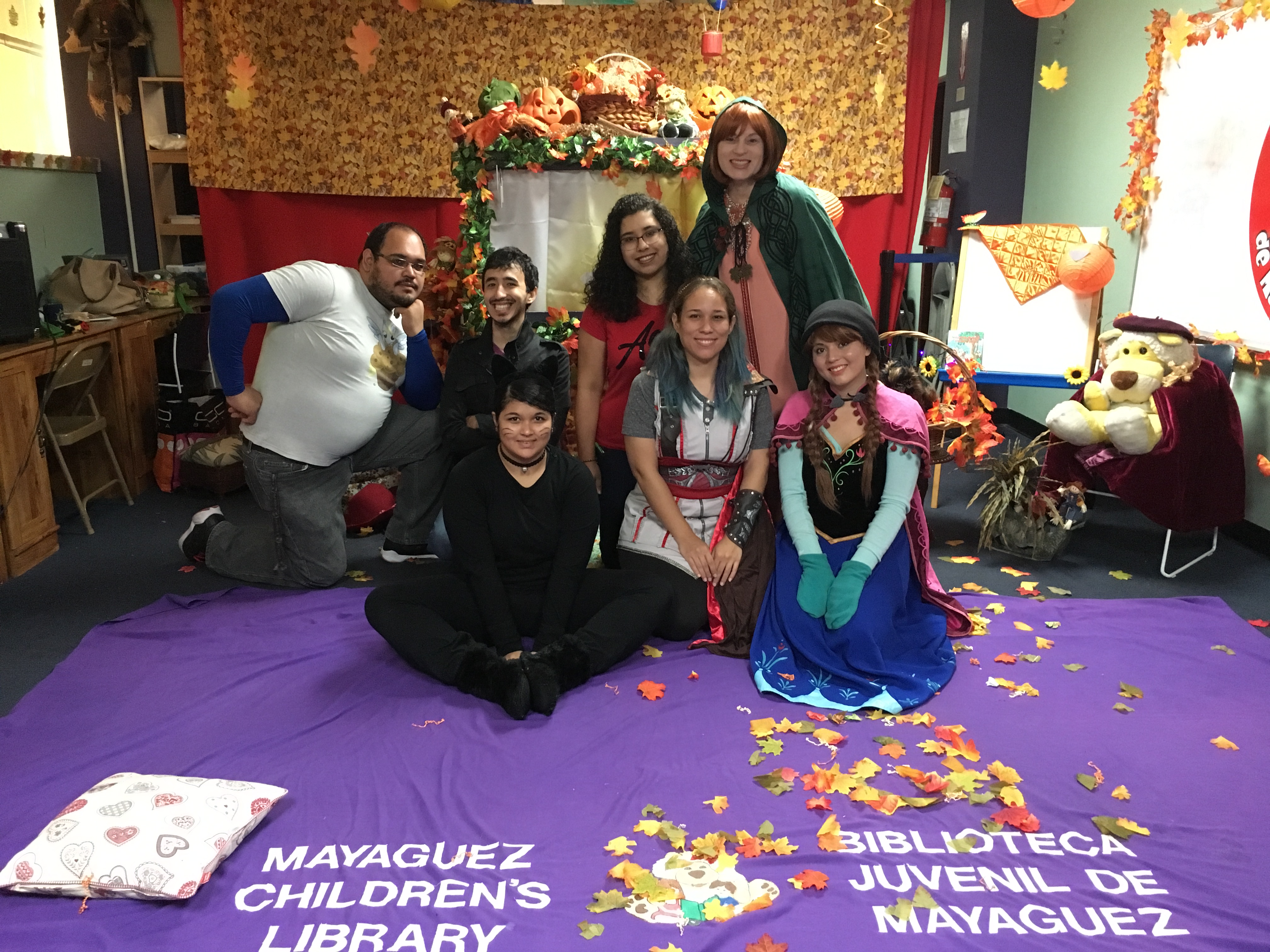 On Saturday, October 29, members of the English Department Student Association (EDSA) and the Future Teachers Association (AFM) joined forces with Dr. Linda Rodríguez and took a Halloween adventure to children at Mayagüez’s Children’s Library. From friendly dogs to a scary forest filled with gargoyles, and witches, the children helped Nena and her friends return home.