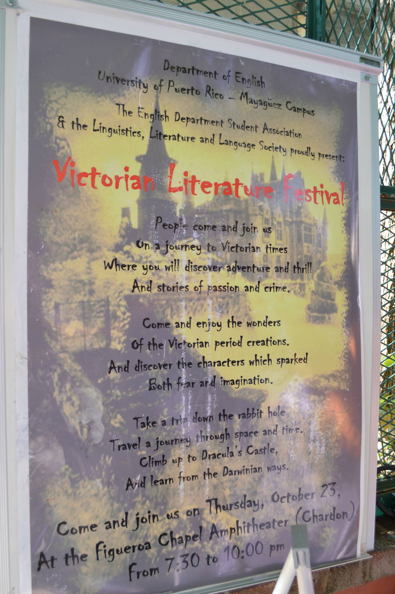 The English department table was staffed by EDSA and Cinematheque members, with a corner of the table featuring information on the department’s Film certificate to attract students who wish to pursue film studies. Members of EDSA cosplayed as different pop culture characters (such as Asuna, Walter White, Dracula, the Bride of Frankenstein, Mr. Anderson, and even a TARDIS), which definitely caught the students’ attention, as many rushed to the table to take pictures and then stuck around to hear about why the English department is the (self-described) ”cool” department.
