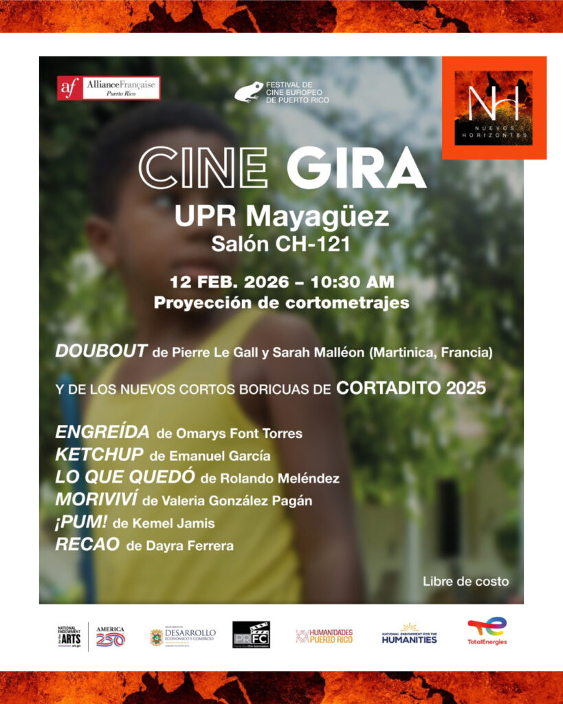 La Alliance Française de Puerto Rico y el Festival de Cine Europeo de Puerto Rico nos presentan los cortometrajes seleccionados en Cortadito 2025, una competencia que promueve y visibiliza el talento cinematográfico puertorriqueño emergente y fomenta el análisis del lenguaje audiovisual y el diálogo cultural caribeño.