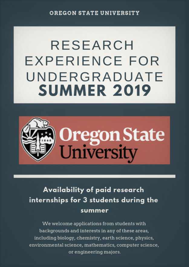 Oregon State University is proud to announce the availability of paid research internships for 3 students during the summer.