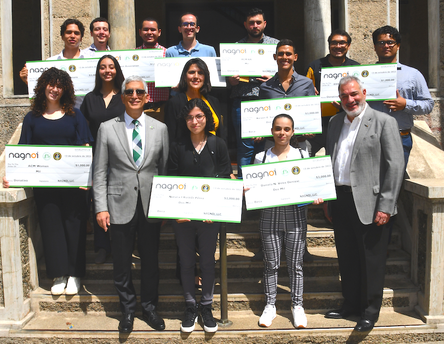 El estudiante Diego Rivera de nuestro Departamento del programa en Ciencias de la Computación, recibe beca de la empresa puertorriqueña Nagnoi. La empresa entregó sus primeras cinco becas del programa de ayudas que instituyó hace un año para estudiantes especializados en computación del Recinto Universitario de Mayagüez (RUM) de la Universidad de Puerto Rico (UPR). Los otros estudiantes fueron Natalia I. Roldán Pérez, Daniela N. Vélez Denizac, Sebastián A. Cruz Romero y Keiven E. Soto Cabrera. Cada uno recibió $2,000 por su desempeño académico y sus destrezas. Asimismo, la compañía concedió cuatro donativos ascendentes a $1,000 a las organizaciones estudiantiles Institute of Electrical and Electronics Engineers, IEEE Computer Society UPRM Branch; la Computer Alliance of Hispanic Serving Institutions, CAHSI Student Association; la Association for Computing Machinery, ACM Women; y la Association for Computing Machinery Business Administration, ACM BA. Ver mas detalles en la página Prensa RUM.