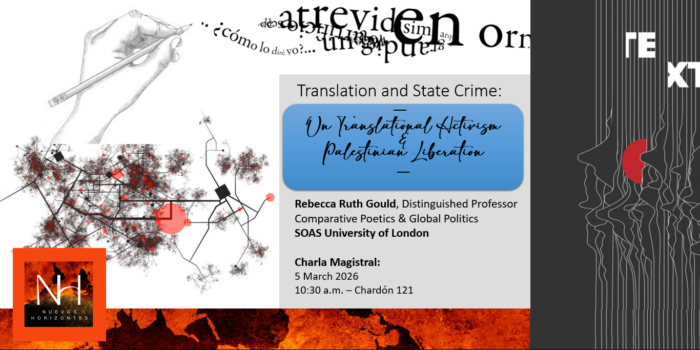Charla Magistral: Translation and State Crime: On Translational Activism & Palestinian Liberation Rebecca Ruth Gould, Distinguished Professor Comparative Poetics & Global Politics SOAS University of London — 5 de marzo de 2026 CH 121 – 10:30 — — –