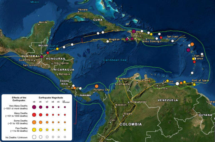 En 1867, un terremoto de ~M 7,5 en el Paso de Anegada generó un tsunami destructivo que impactó en Puerto Rico y las Islas Vírgenes. Durante la Secuencia Sísmica del Suroeste de Puerto Rico de 2020, el evento de ~M 6,4 del 7 de enero generó un tsunami menor registrado sólo en las estaciones locales del nivel del mar con una amplitud de ~0,04m, o alrededor de 1,5 pulgadas. Al norte, el último evento que puede asociarse con la subducción que ocurrió en 1946 en la República Dominicana, cuando se produjo un terremoto de ~M 8,1. El último gran tsunami destructivo en Puerto Rico se produjo en 1918, tras un terremoto de ~M 7,3 en el Cañón de la Mona.
