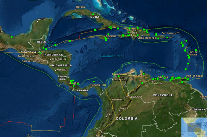 Ahora que comprendemos qué son los tsunamis y cómo se desarrollan, consideremos las fuentes que pudieran amenazar la zona de Puerto Rico e Islas Vírgenes. Para comenzar, consideremos las fuentes de tsunami con respecto a su distancia de Puerto Rico.