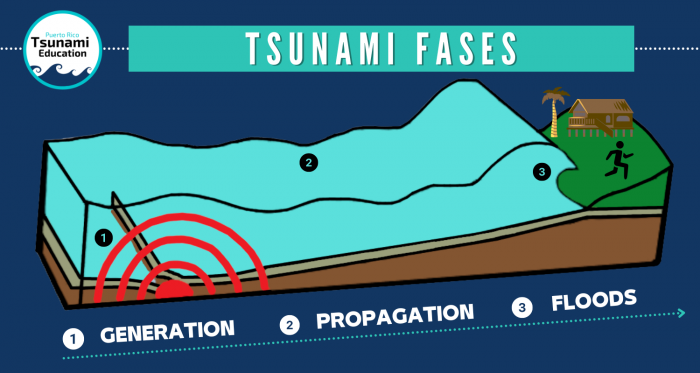 Tsunamis are composed of three phases:
