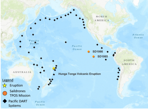 Another potential source for earthquakes is volcanic eruptions. Just like landslides, the dangers of these cannot be monitored the same way of earthquakes. The most recent event on this type was in 2022. Where NOAA informs that when the Hunga Tonga-Hunga Ha’apai volcano erupted off the coast of Tonga in the South Pacific Ocean, generated a tsunami and triggered tsunami alerts around the world. It also explains how only about 5% of tsunamis are generated from volcanic activity (ITIC), making this a rare event captured by NOAA’s observing instruments.
