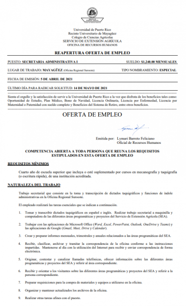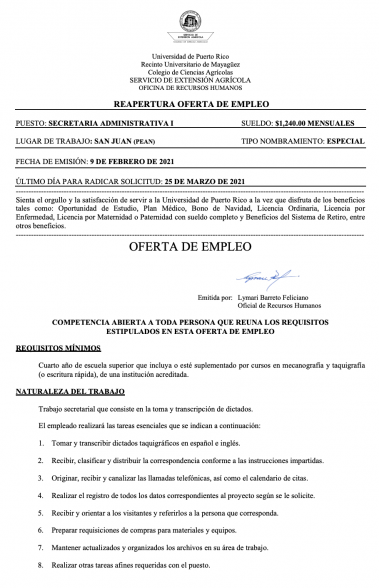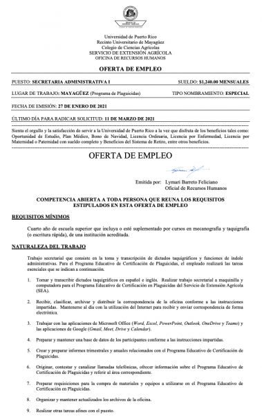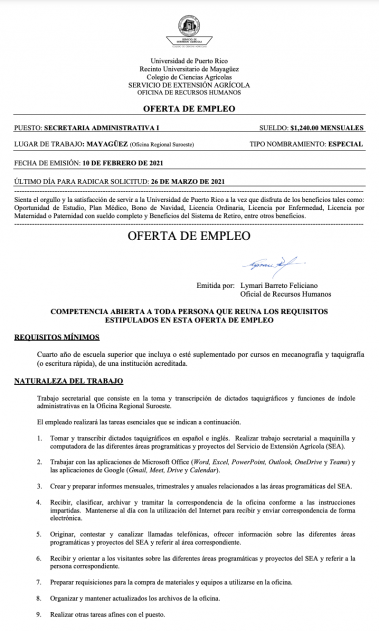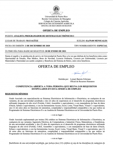 UPRM SEA Call Box 9000 Mayagüez, Puerto Rico